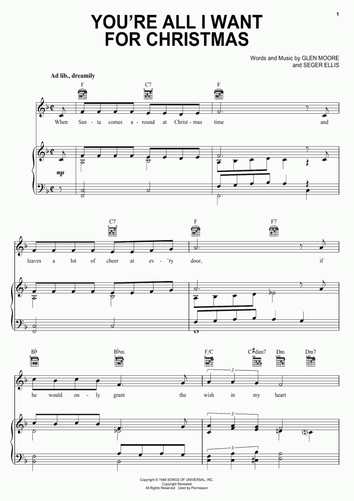 Share, download and print free sheet music of All I Want For Christmas Is You Mariah Carey for piano, guitar, flute and more with the world's largest community of sheet music creators, composers, performers, music teachers, students, beginners, artists and other musicians with over 1,000,000 sheet digital music to play, practice, learn and enjoy.