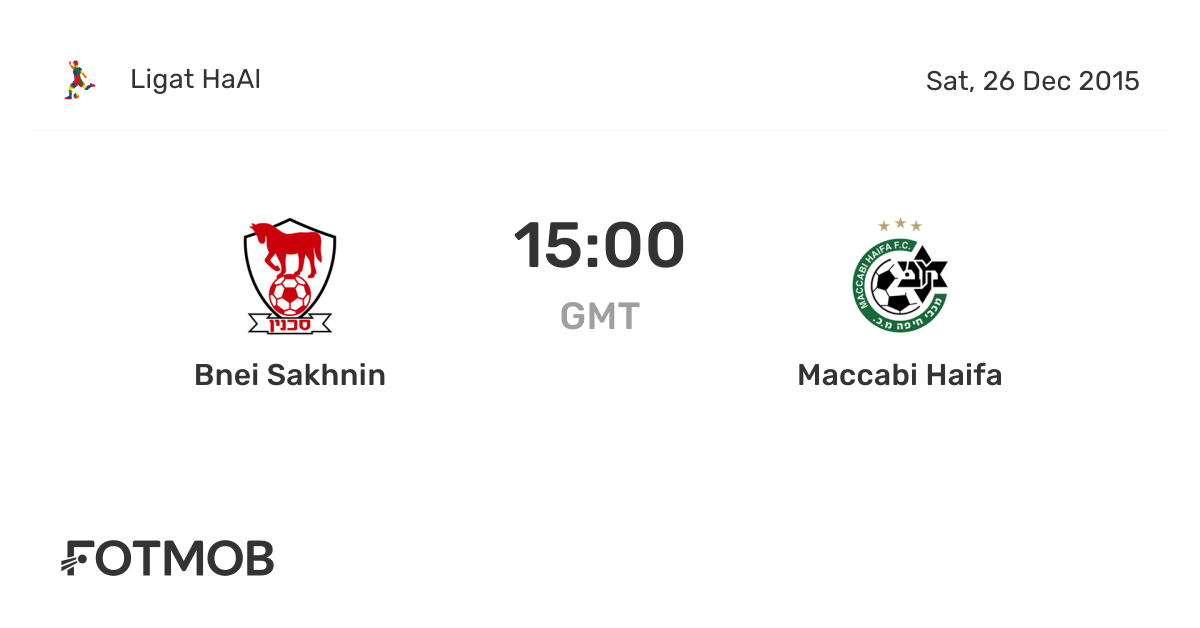 Get the latest Bnei Sakhnin - Maccabi Haifa stats and match highlights. Watch Results. Football Snooker Tennis. All Sports.. Maccabi Bnei Reineh. 0. 1. Bnei Sakhnin. 27/12/2023 - Ligat ONE ZERO.