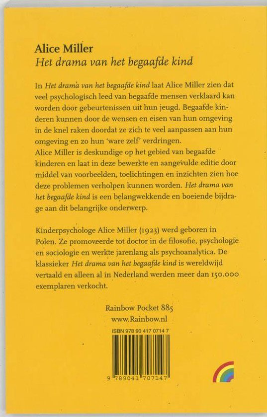 Het drama van het begaafde kind. De Zwitserse psychoanalytica Alice Miller (1923), grondlegster van de moderne psychoanalyse, werd wereldberoemd met haar bestseller Het drama van het begaafde kind. Veel mensen lukte het dankzij Miller de deur naar hun ware zelf te openen.