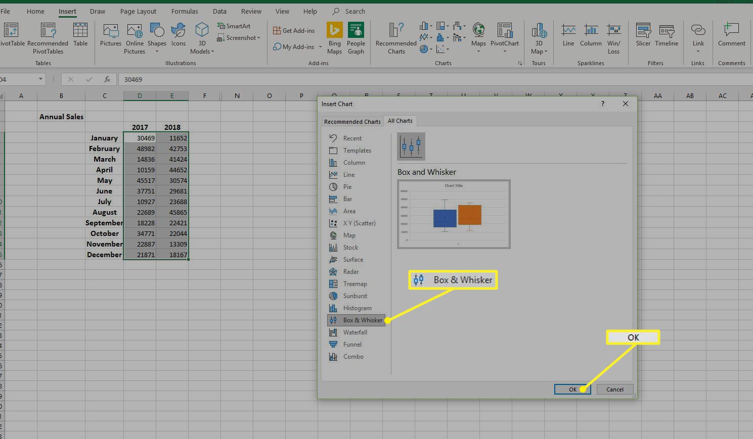 Hoe maak je een Box en Whiskerplot in Excel? 2021