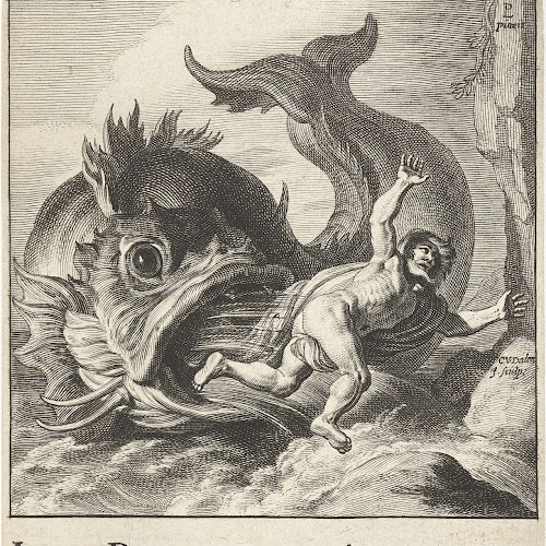Jonas en de Walvis. Het idee dat walvissen booschappers van onheil zijn komt uit de Bijbel. Het verhaal van Jonas en zijn walvis, met Jonas die opgegeten wordt door de walvis, werd in de Nederlanden door de dominees veel verteld. Jonas had de opdracht die God hem gegeven had niet uitgevoerd, waardoor God besloot om Jonas te straffen.