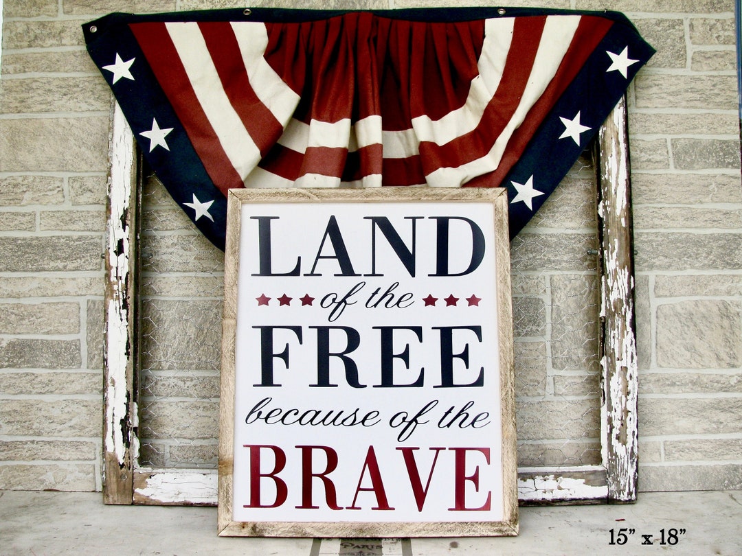 Land of the Free Because of the Brave Farmhouse 4th of July Etsy