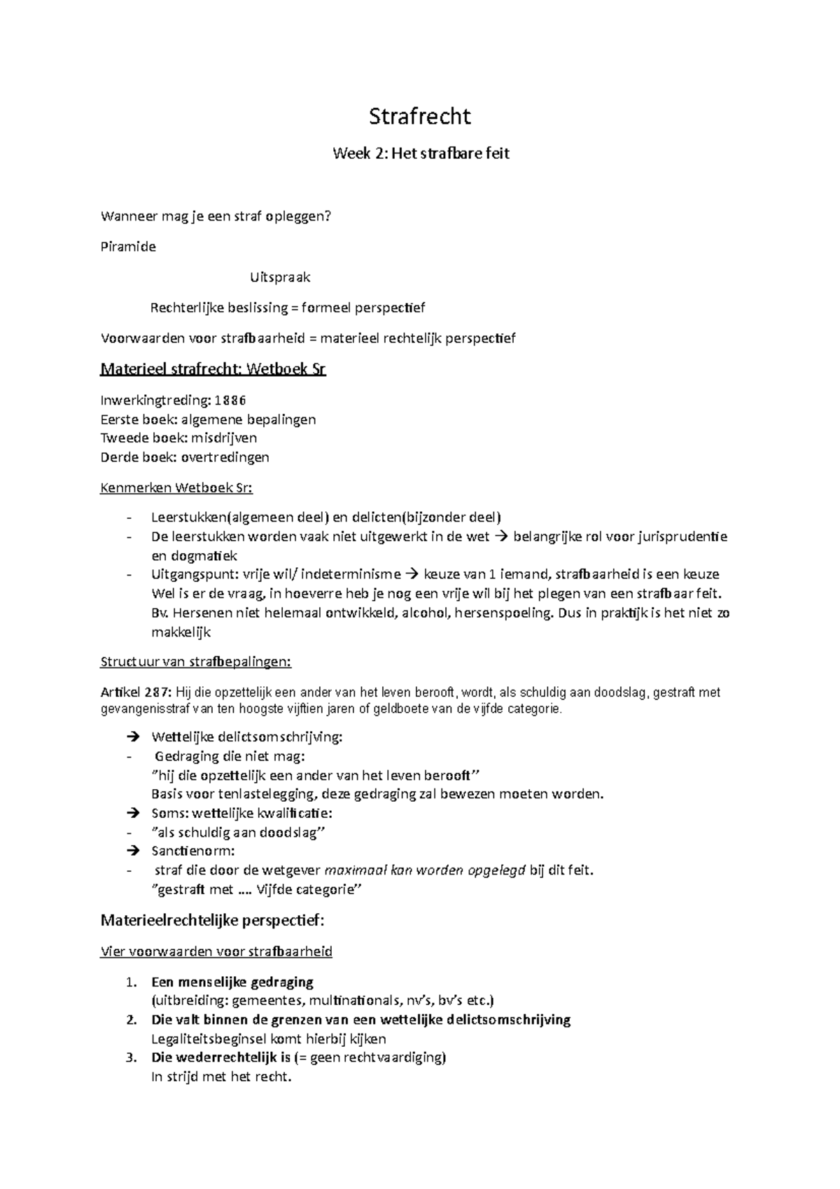 Week 2,4 en 5 aantekningen Strafrecht Week 2 Het strafbare feit Wanneer mag je een straf
