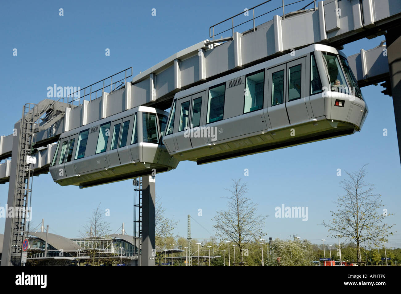 Skytrain, Flughafen Düsseldorf International, Deutschland; Annäherung an die Flughafen Bahnhof