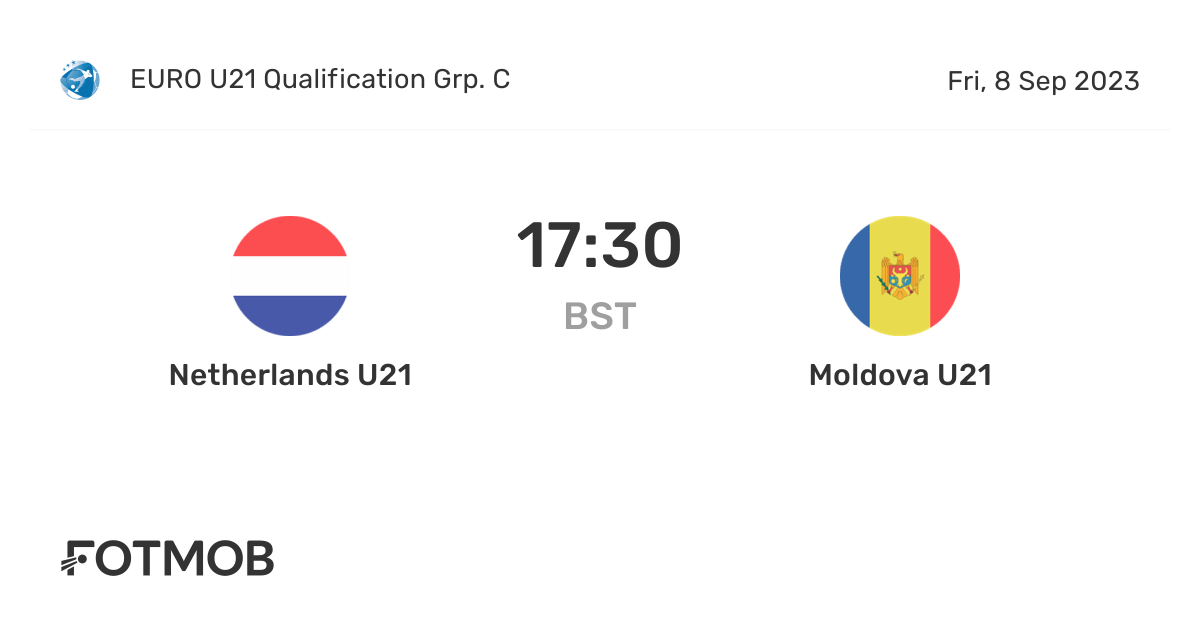 About the match. Moldova U21 is going head to head with Netherlands U21 starting on 25 Mar 2024 at 18:30 UTC . The match is a part of the U21 EURO, Qualification, Group C. Moldova U21 played against Netherlands U21 in 2 matches this season. Currently, Moldova U21 rank 5th, while Netherlands U21 hold 1st position.