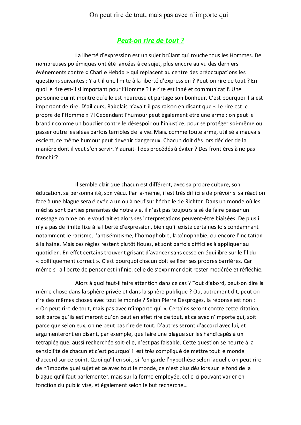 On peut rire de tout, mais pas avec n’importe qui Docsity