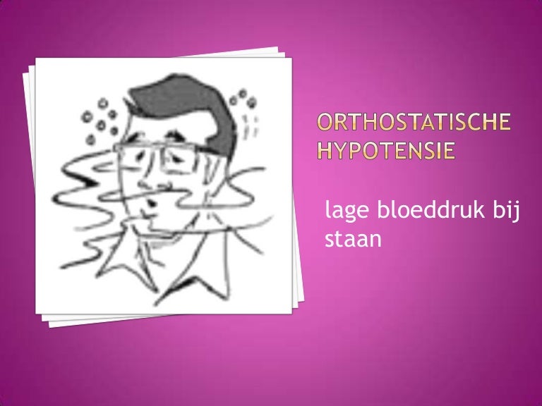 Orthostatische hypotensie. Ouderengeneeskunde. 088 320 47 00. Ma t/m vrij 08.30-12.00 en 13.00-16.30 uur. Locaties Ouderengeneeskunde. Wachttijden bekijken. Team Ouderengeneeskunde. Orthostatische hypotensie is een aandoening waarbij er sprake is van een plotselinge daling van de bloeddruk wanneer iemand vanuit liggen of zitten naar een.