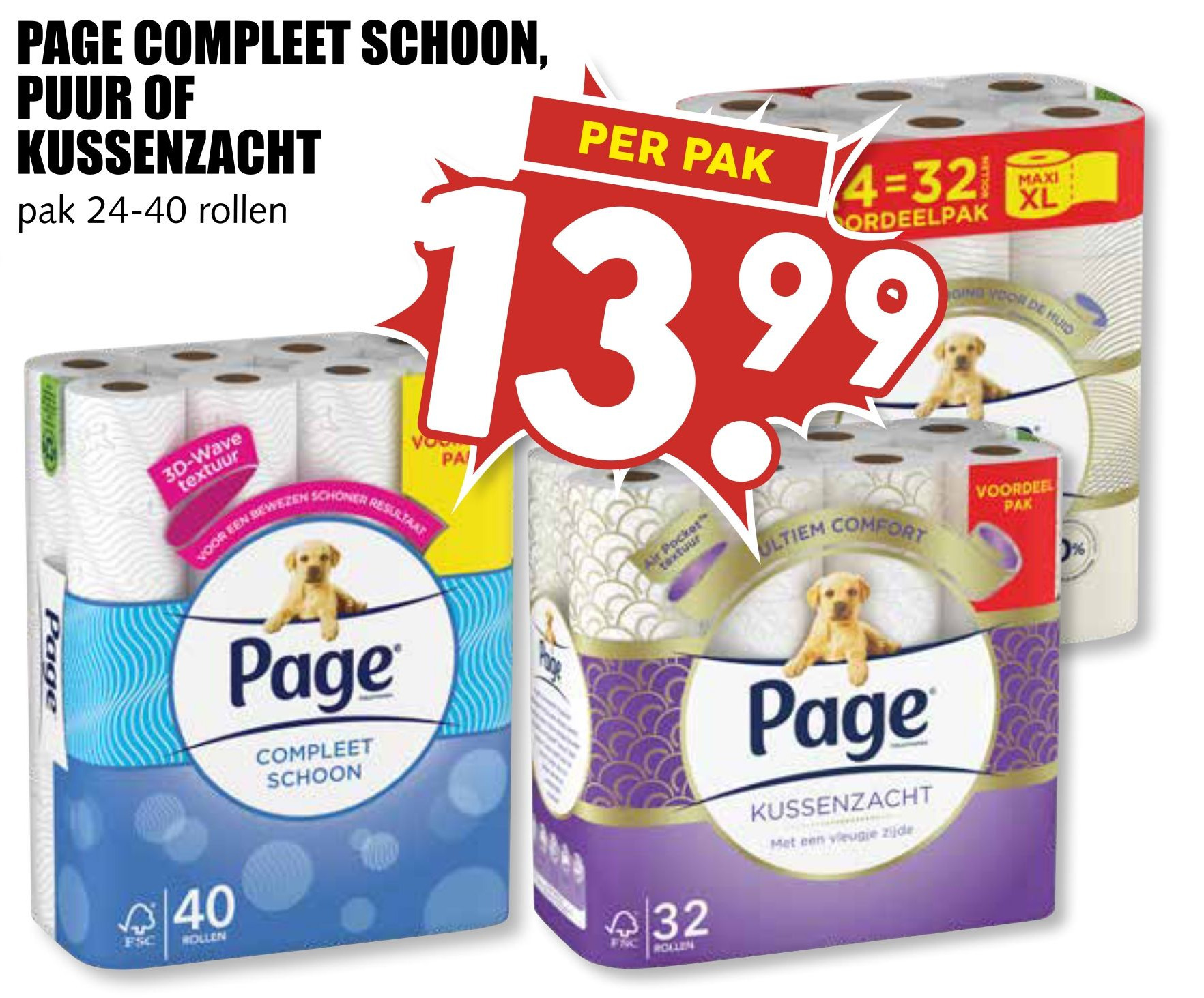 Page compleet schoon 40 rollen, page kussenzacht 32 rollen promotie bij Albert Heijn