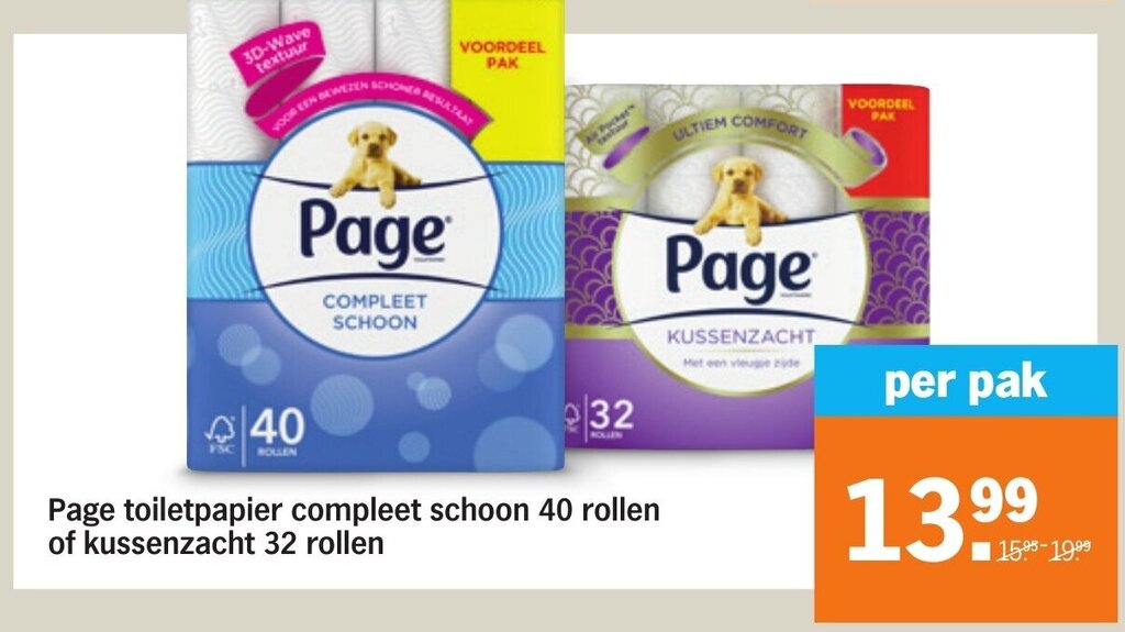 Page compleet 40 rollen of kussenzacht 32 rollen aanbieding bij Albert Heijn