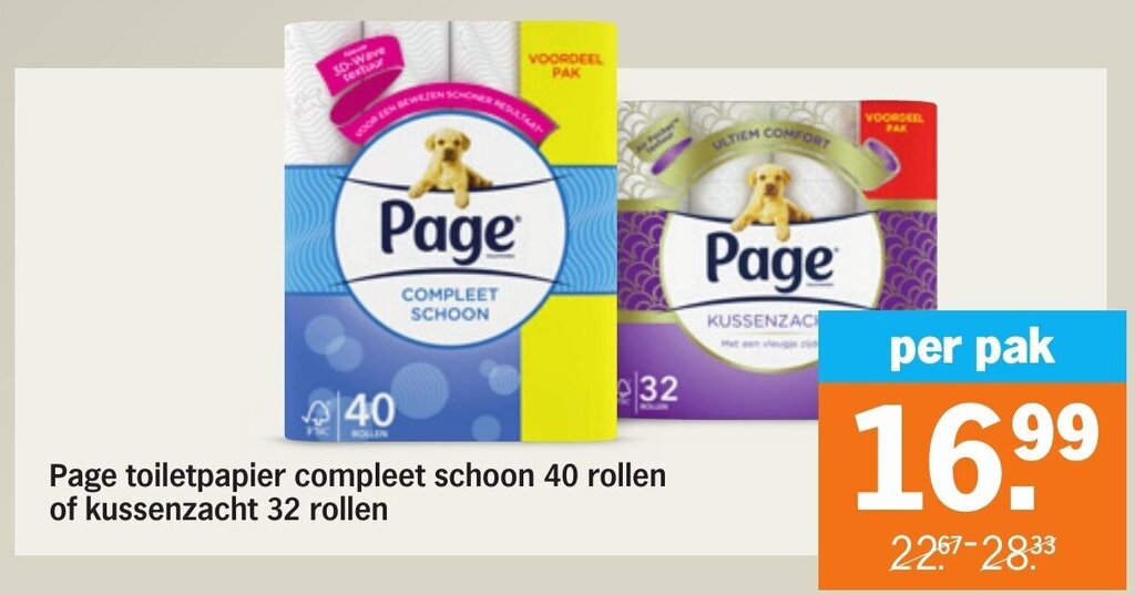 Page Compleet Schoon Toiletpapier 12-rollen. 12 Rollen. 7 81. 0,65/stuk. Page Kussenzacht Design Toiletpapier 18-rollen. 18 rollen. Online max 3 keer. 1 voor € 9,99. wo 1 mei t/m di 28 mei. 11,80. 9 99. 0,56/stuk. Page Toiletpapier Sensitive Voordeelpak 16 Rollen. 16 rollen. Online max 3 keer. 1 voor € 9,99.