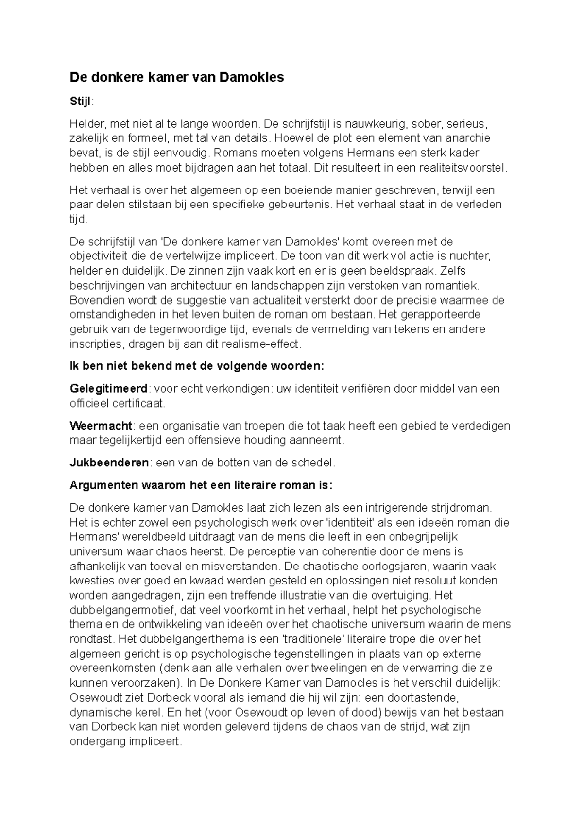 Samenvatting, ideeen Donkere kamer van damokles Samenvatting, ideeen Donkere kamer van