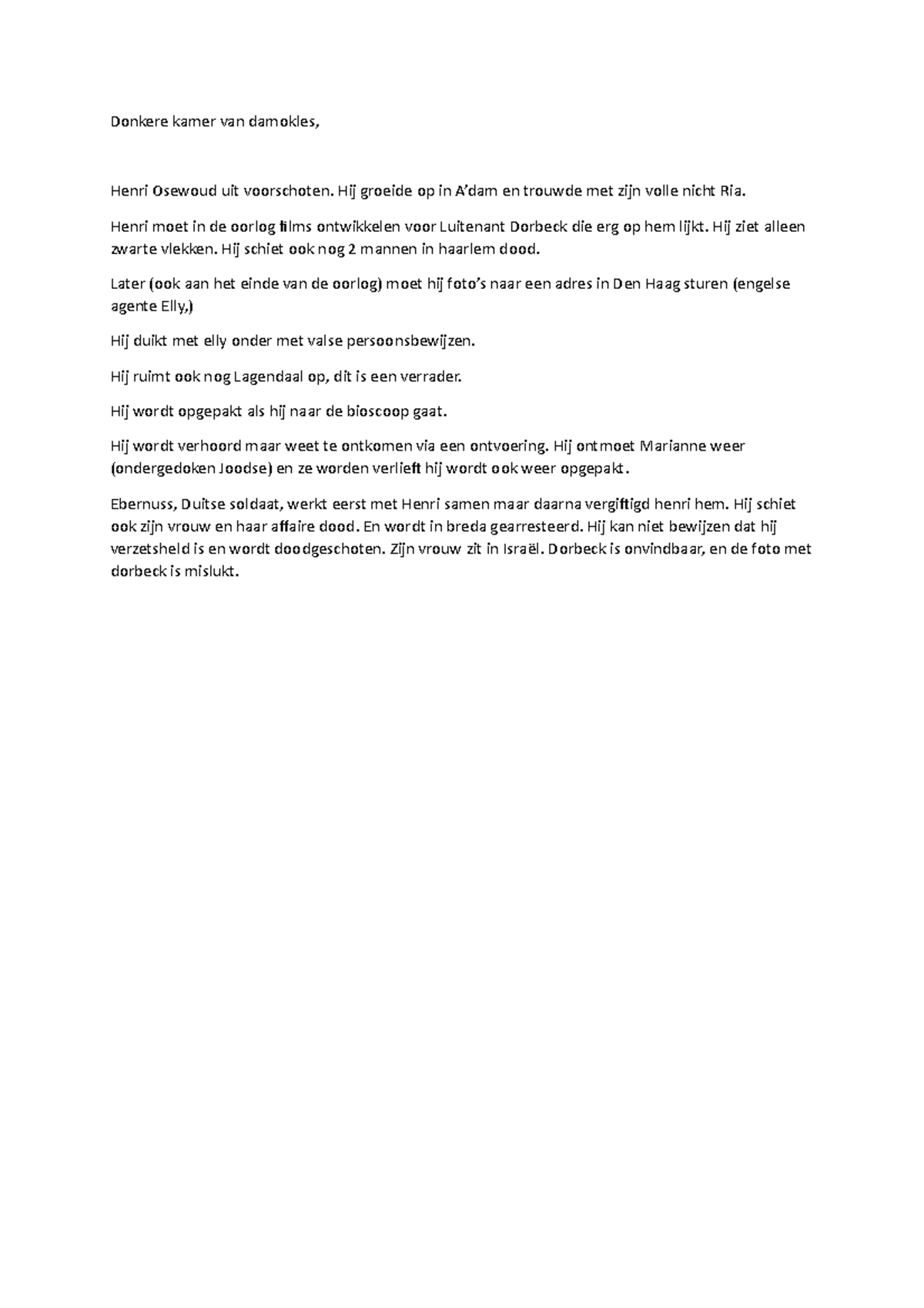 Donkere kamer van damokles samenvatting Donkere kamer van damokles, Henri Osewoud uit
