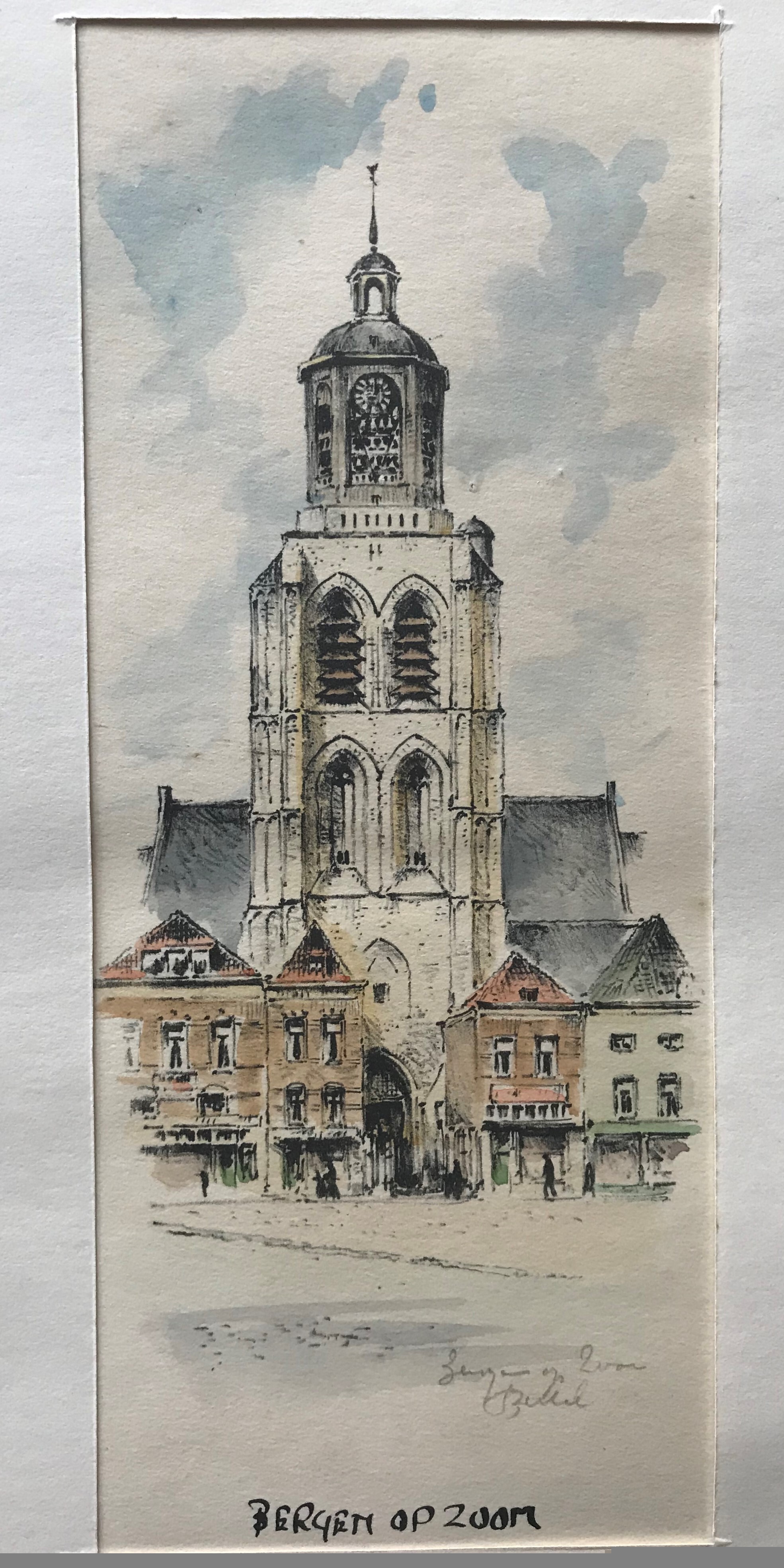 Een originele aquarel Sint Gertrudiskerk, Bergen op Zoom by [ANON] HarrisonHiett Rare Books