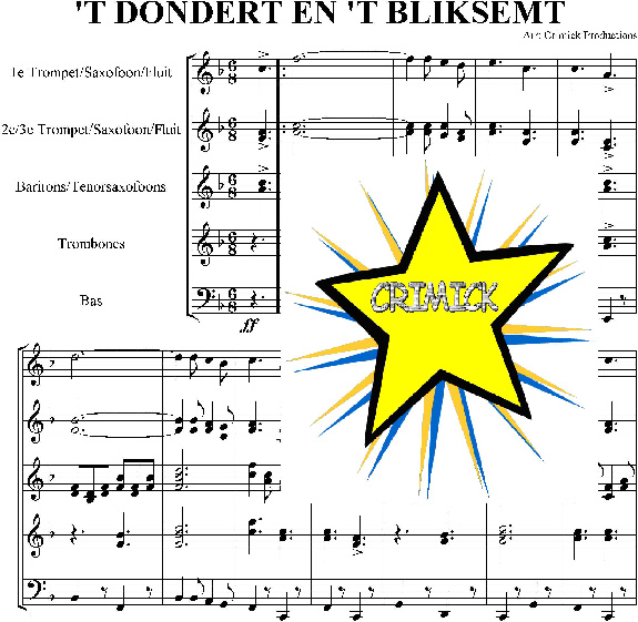 Download and print in PDF or MIDI free sheet music of t dondert en t bliksemt - Guus Meeuwis for T Dondert En T Bliksemt by Guus Meeuwis arranged by joost.brandes for Flute, Clarinet other, Trumpet other (Mixed Quartet)