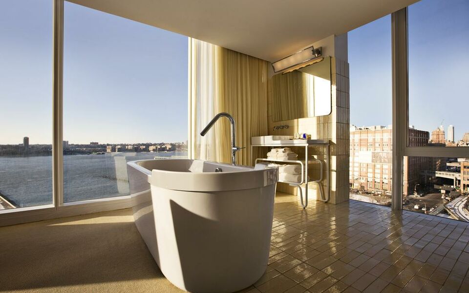 The Standard, High Line has a lovely and free 24-hour fitness center located on the 17th floor, allowing for great views of the Hudson River through huge floor-to-ceiling windows. The 1,500-square-foot facility is equipped with Technogym cardio and strength-training equipment, and free weights.