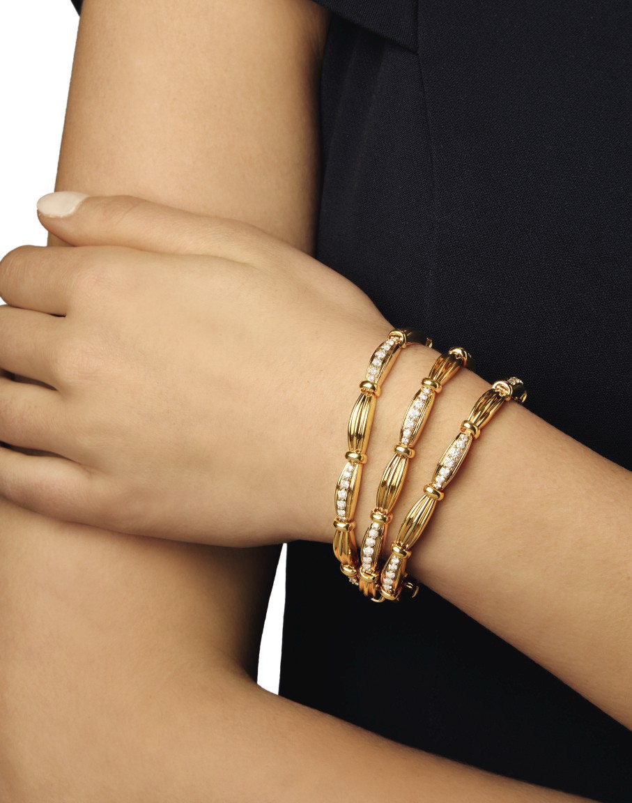Our collection of 18k yellow, white and rose gold bangles with diamonds features eye-catching details —a must-have to transform any day or night ensemble. For questions about gifting and jewelry, contact a Sales Professional. For engagement guidance, contact a Diamond Expert. Explore a curated selection of bangle bracelets.