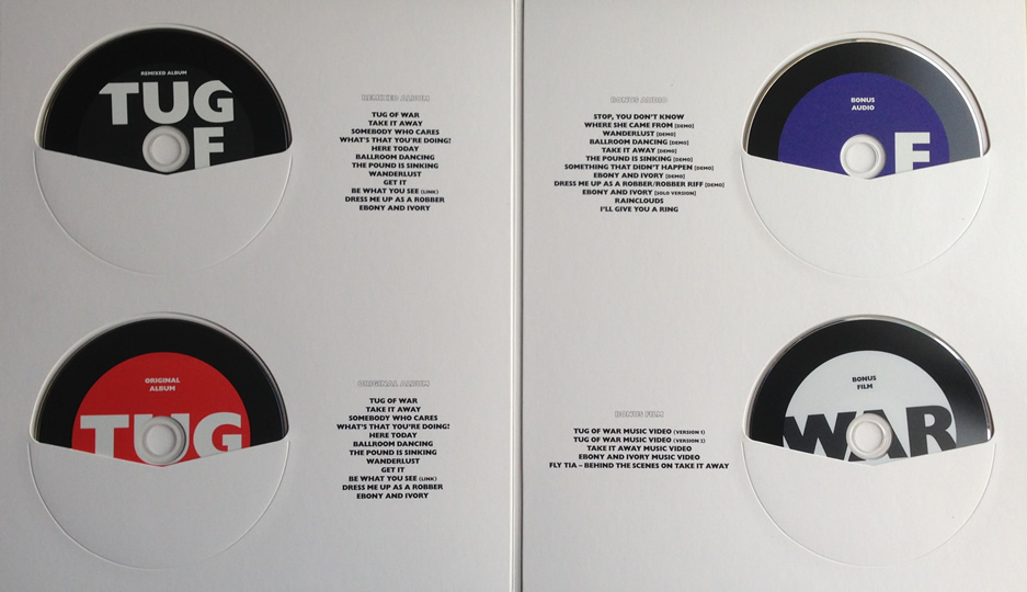 TUG OF WAR was released April 1982 and comprised of 12 songs. It went gold in the UK and platinum in the US. TUG OF WAR (remaster) Archive Collection was rel.